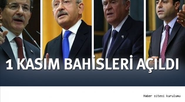 Uluslararası bahis siteleri, 1 Kasım´da Türkiye´de gerçekleştirilecek Milletvekili Genel Seçimi için “seçim bahisleri” açtı. “Türkiye Genel Seçimi” adı altındaki bahislerde lider fotoğraflarıyla birlikte AK Parti, CHP, HDP ve MHP´nin alabileceği oy oranlarıyla ilgili yüzde aralıkları yer alıyor. Avrupa kaynaklı bir sitede AK Parti´ye yüzde 38-40.5 arasında 2.25, yüzde 40.6- 42.9 arasında 2.60 oranı veriliyor.